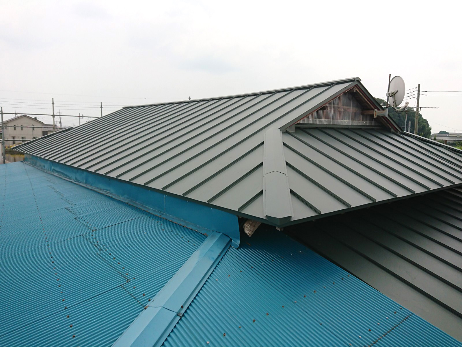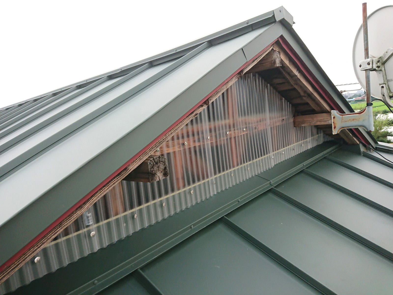 現場調査時に瓦棒板金屋根の経年劣化による赤サビ、塗装の痛みを確認しました。この小さな錆が始まりで放置しているとドンドン大きくなり塗装では補修出来ない状態になりかねません。今回は屋根材の基本性能である高い防水性を備え、嵌合部は毛細管現象を防ぐ構造の、スタンビーに葺き替えを行いました。この屋根材は先ほど炭化する心材がなく、隣の材料とはぜにて結合している為、雨の浸入や心材が無い為、腐食するという心配が無くなります。今回の依頼者様は、悪くなってからではなく、予防も含めて、今後、安心して過ごしたい、とのご要望から全面葺き替え工事になりました。
