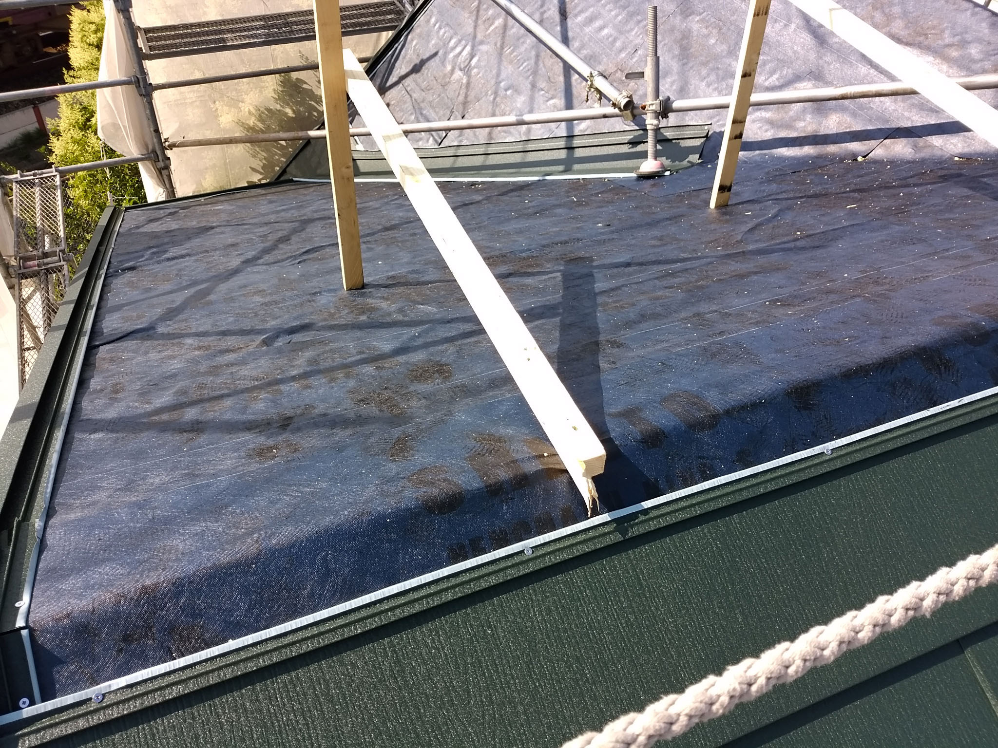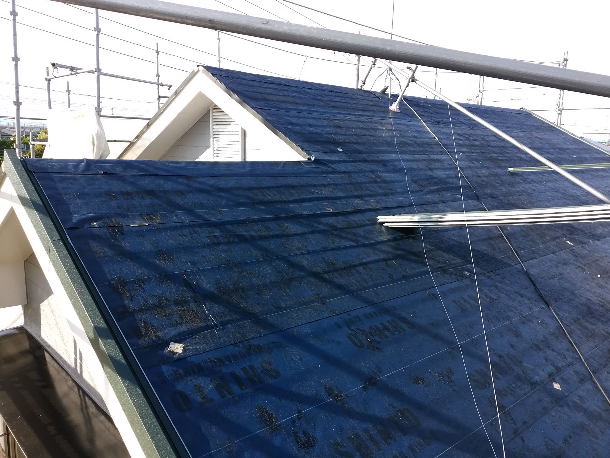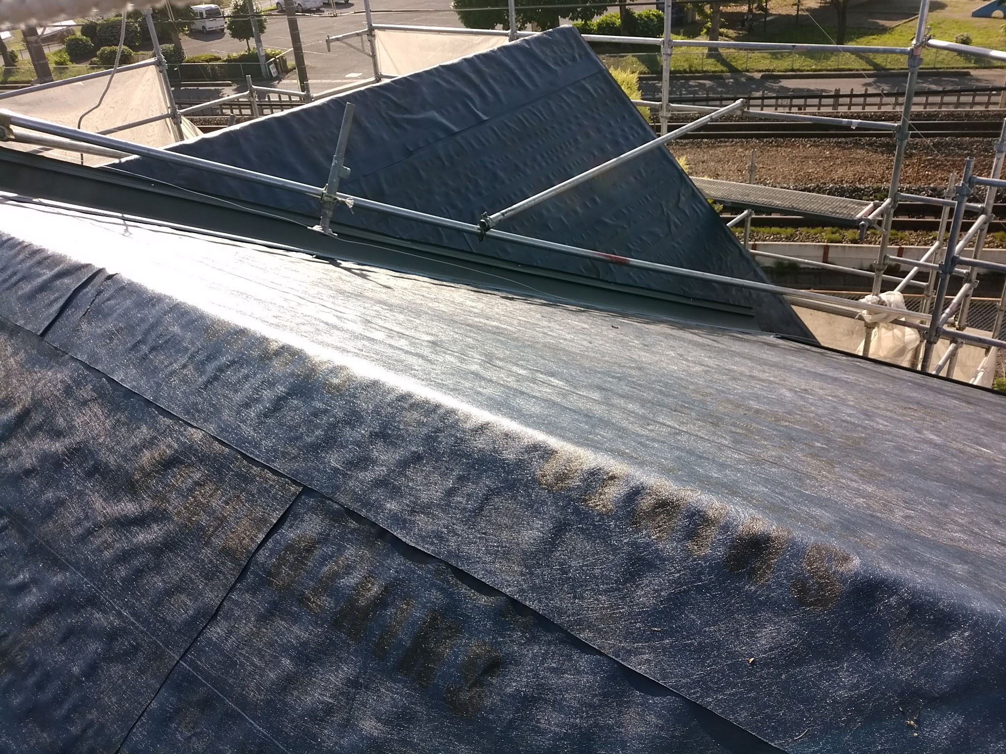 長年大切に住み続けた住宅でも必ず経年劣化は進みます。現場調査時に屋根の経年劣化による一部ひび割れ、塗装の痛みを確認しました。今回は今後のメンテナンスも考慮し、既存屋根の撤去費がかからず、住みながらの工事が可能なガルテクト重ね葺き補修工事をU様にご提案・施工させていただきました。既存のコロニアル屋根の上に、粘着ルーフィングを葺き、雨漏りの心配もなくなりました。粘着ルーフィングはタッカーを使わずに貼ることができるシール式のルーフィングシートで施工時に屋根や野地板を傷つけない為、防水性も高くおすすめです。またIG工業のスーパーガルテクトは優れた断熱性能を発揮するため冷暖房効率も上がります。