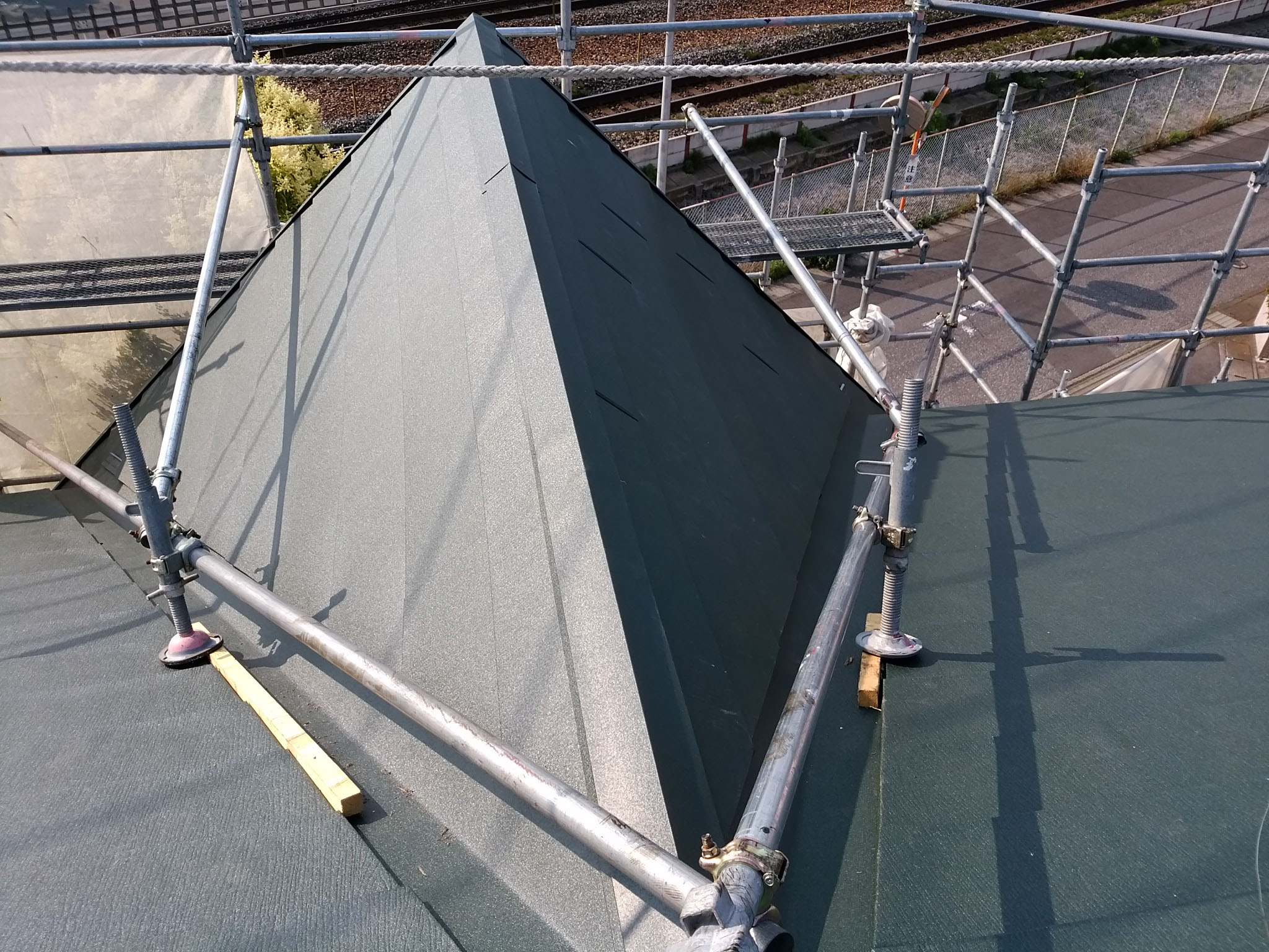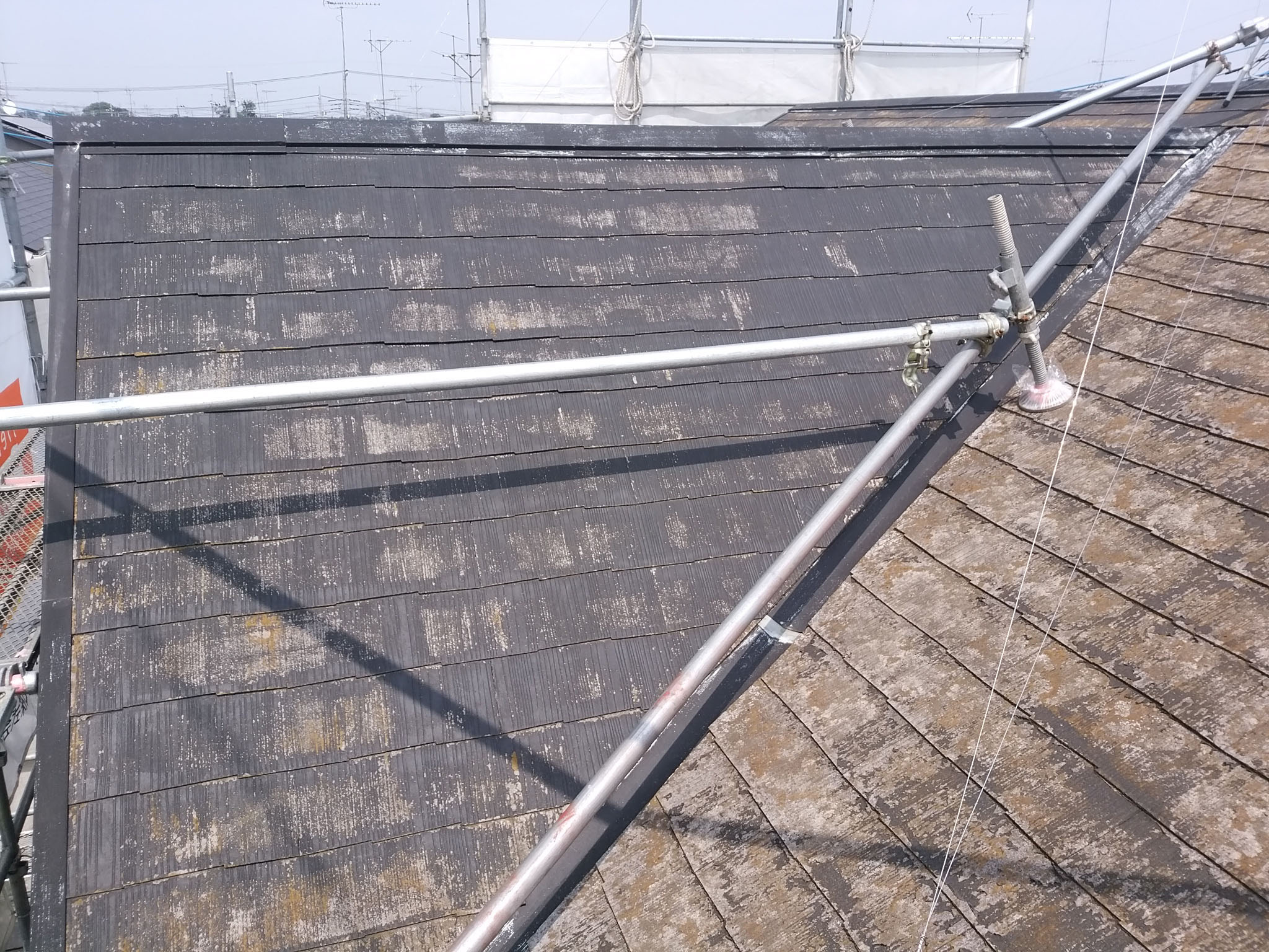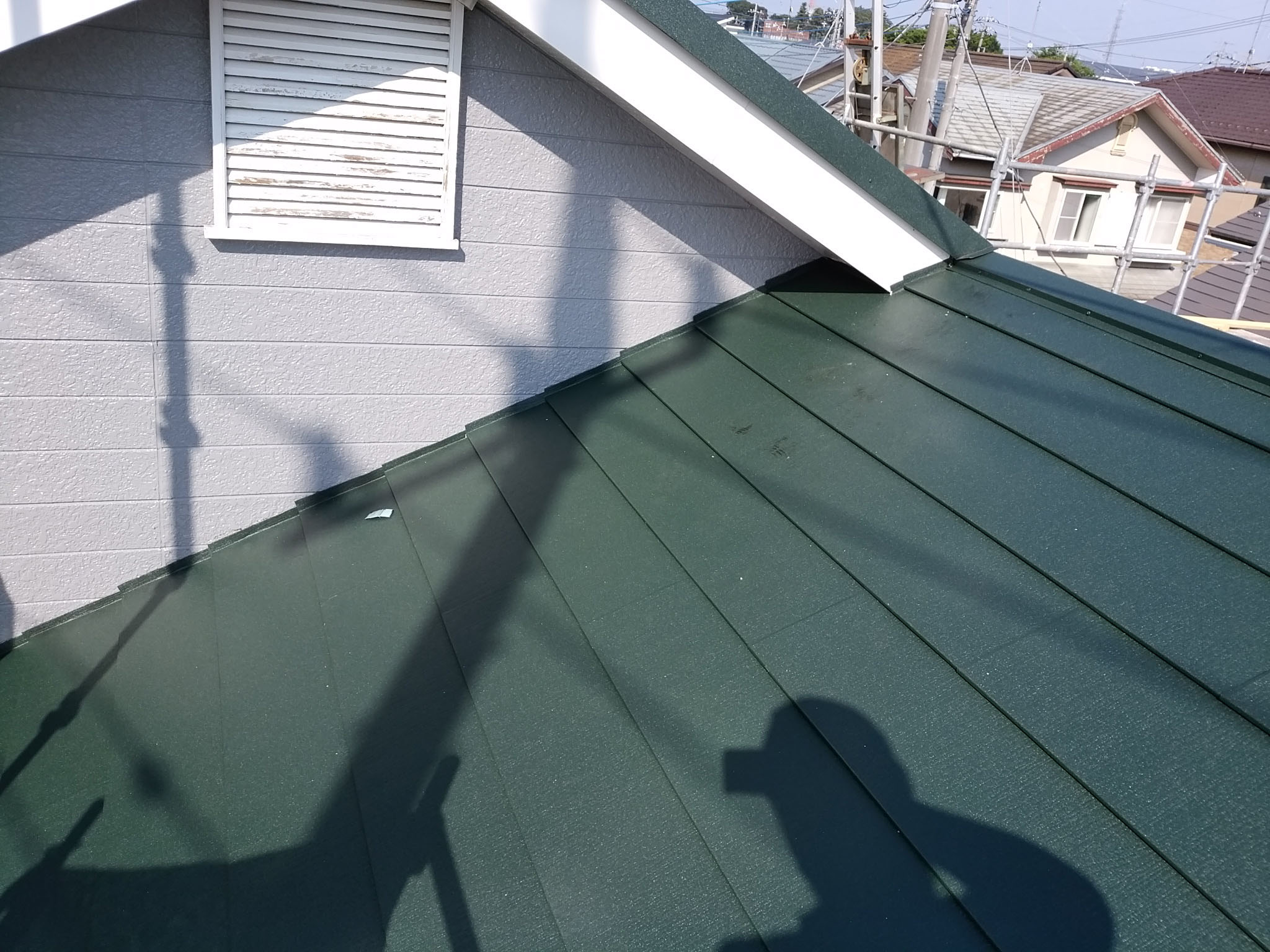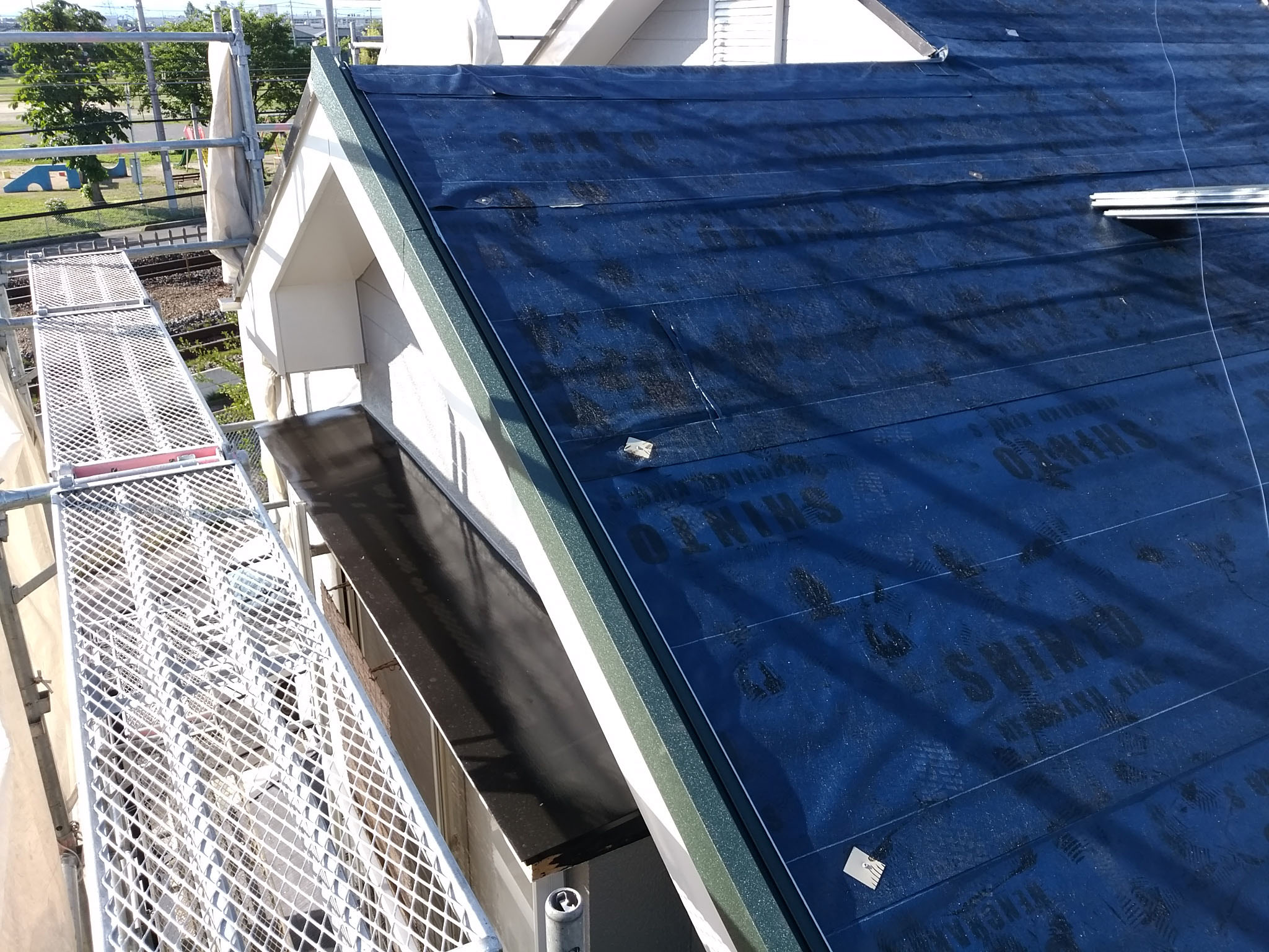 長年大切に住み続けた住宅でも必ず経年劣化は進みます。現場調査時に屋根の経年劣化による一部ひび割れ、塗装の痛みを確認しました。今回は今後のメンテナンスも考慮し、既存屋根の撤去費がかからず、住みながらの工事が可能なガルテクト重ね葺き補修工事をU様にご提案・施工させていただきました。既存のコロニアル屋根の上に、粘着ルーフィングを葺き、雨漏りの心配もなくなりました。粘着ルーフィングはタッカーを使わずに貼ることができるシール式のルーフィングシートで施工時に屋根や野地板を傷つけない為、防水性も高くおすすめです。またIG工業のスーパーガルテクトは優れた断熱性能を発揮するため冷暖房効率も上がります。